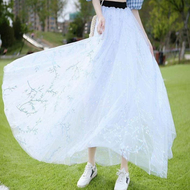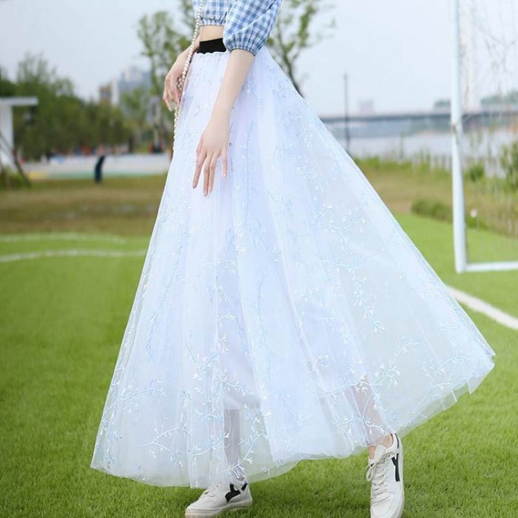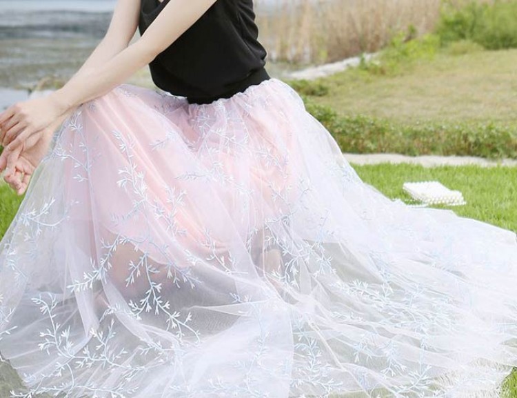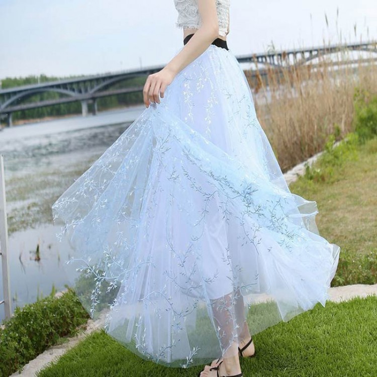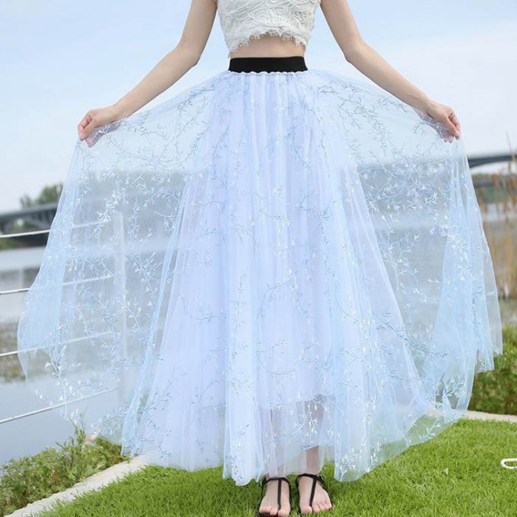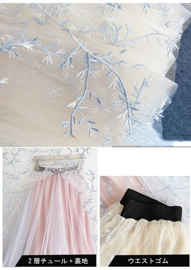 刺繍 チュールスカート ロングスカート ボトムス スカート 人気 80cm(身長150-159cm) 90cm(身長160-165cm) 100cm(身長165-172cm) ホワイト ブルー 杏色 ピンク