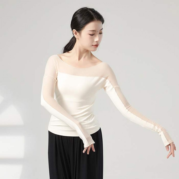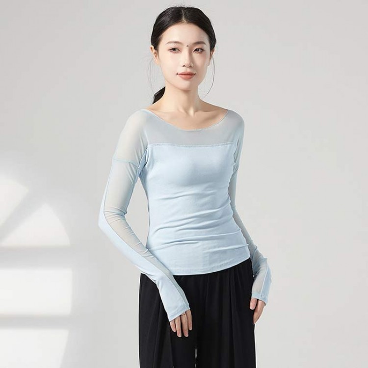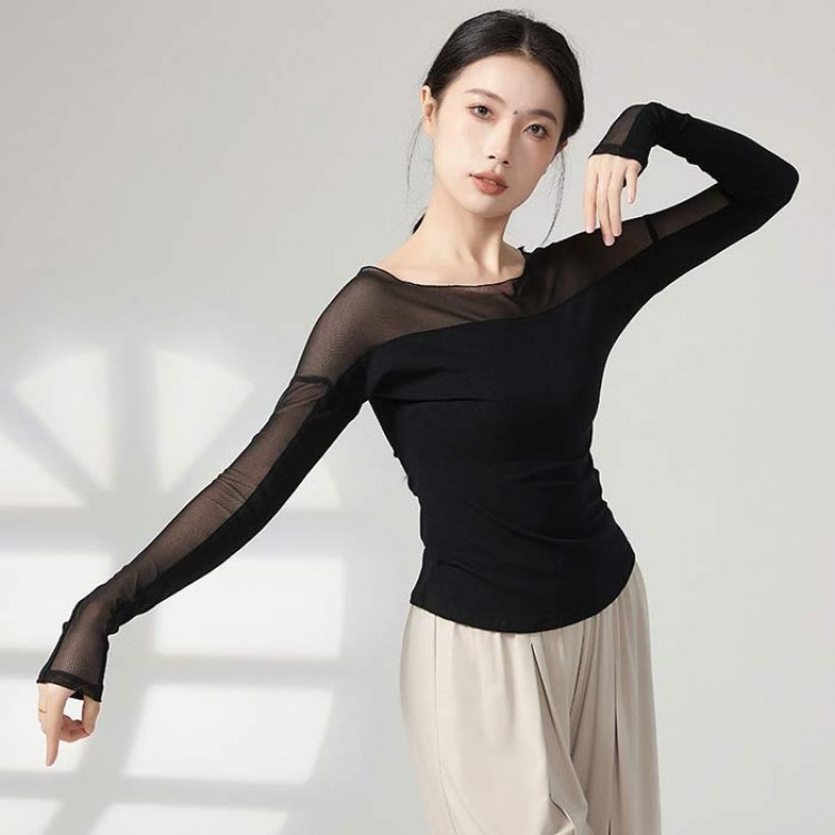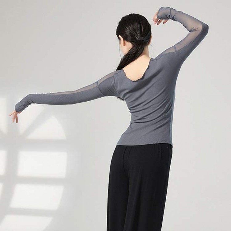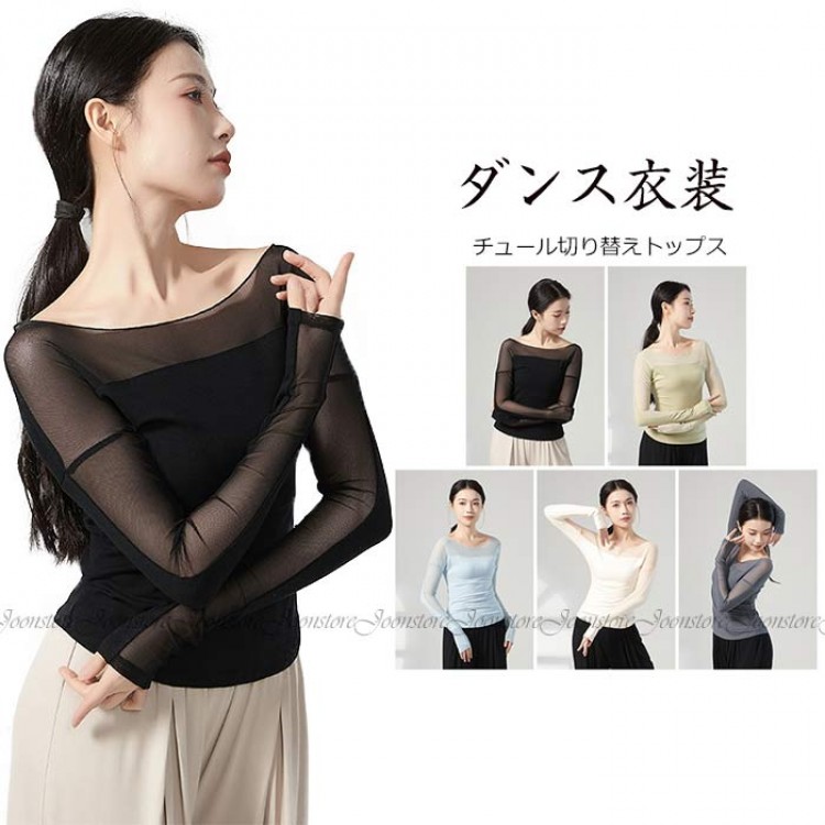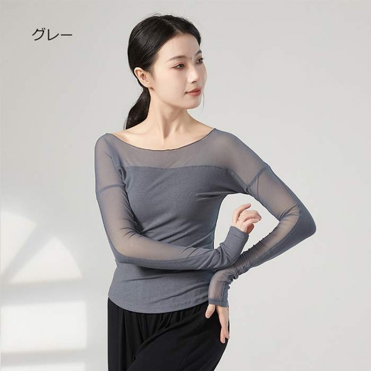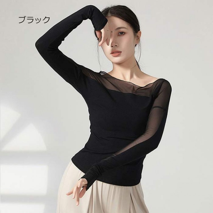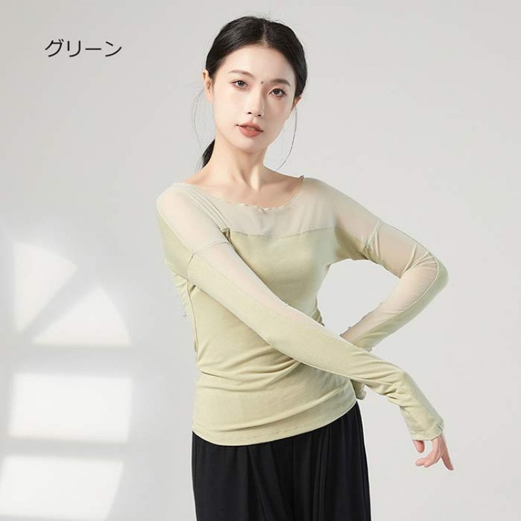 ダンス衣装 トップス バレエ 大人 長 S M L XL ブラック 杏色 ブルー グリーン グレー