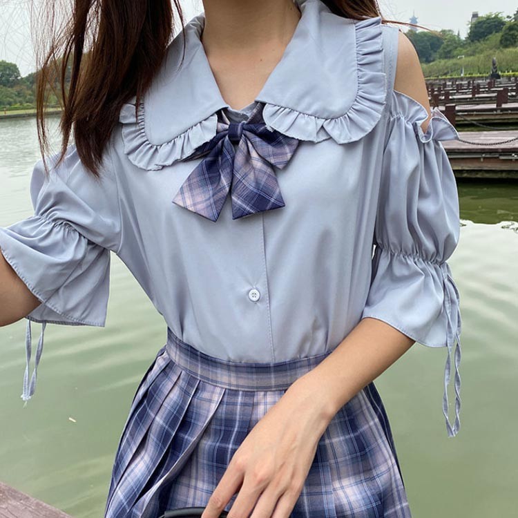 肩出し オフショルダー ビッグカラー トップス シャツ ブラウス 続々登場 ホワイト(半袖) ブラック(半袖) ブルー(半袖) ホワイト(長袖) ブラック(長袖) ブルー(長袖) S M L XL 2XL