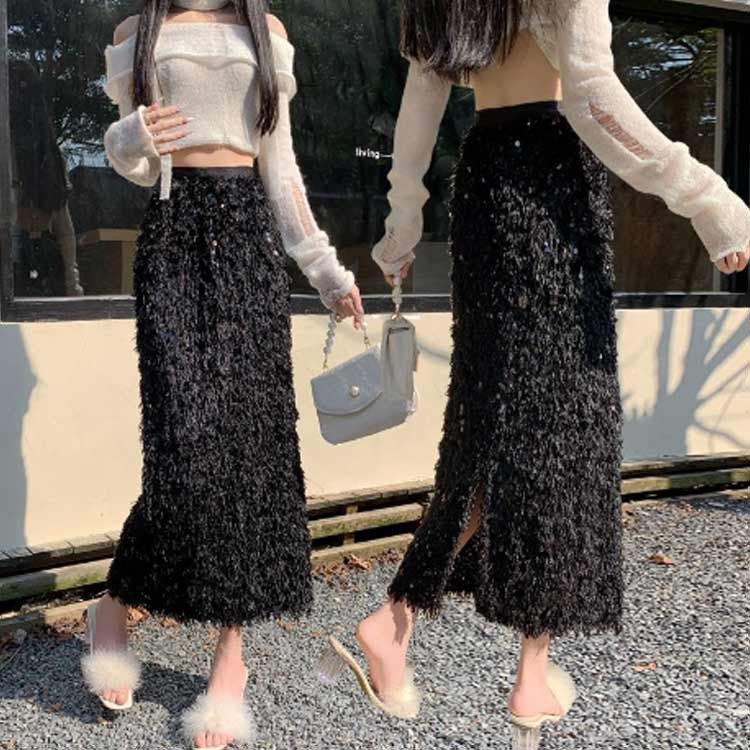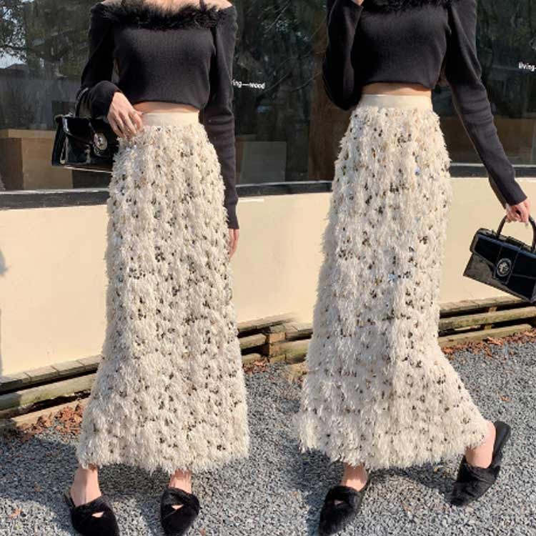 スカート レディース フリンジスカート レディースファッション 通販 ベージュ ブラック S M L XL