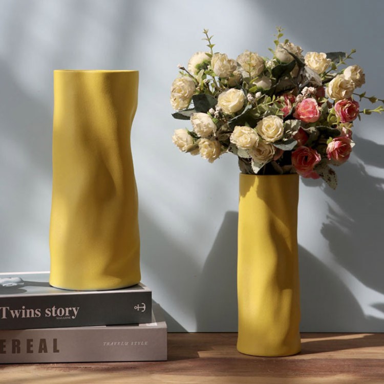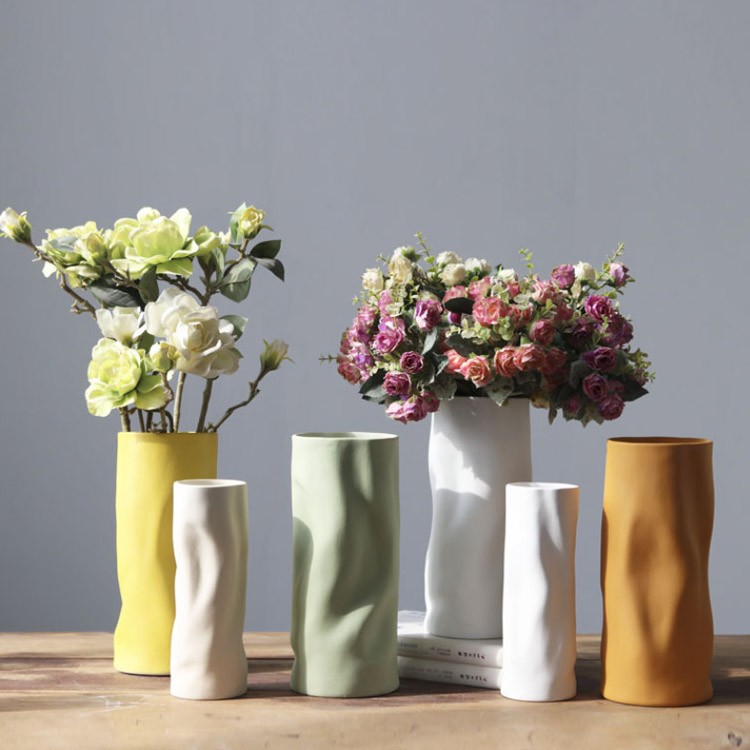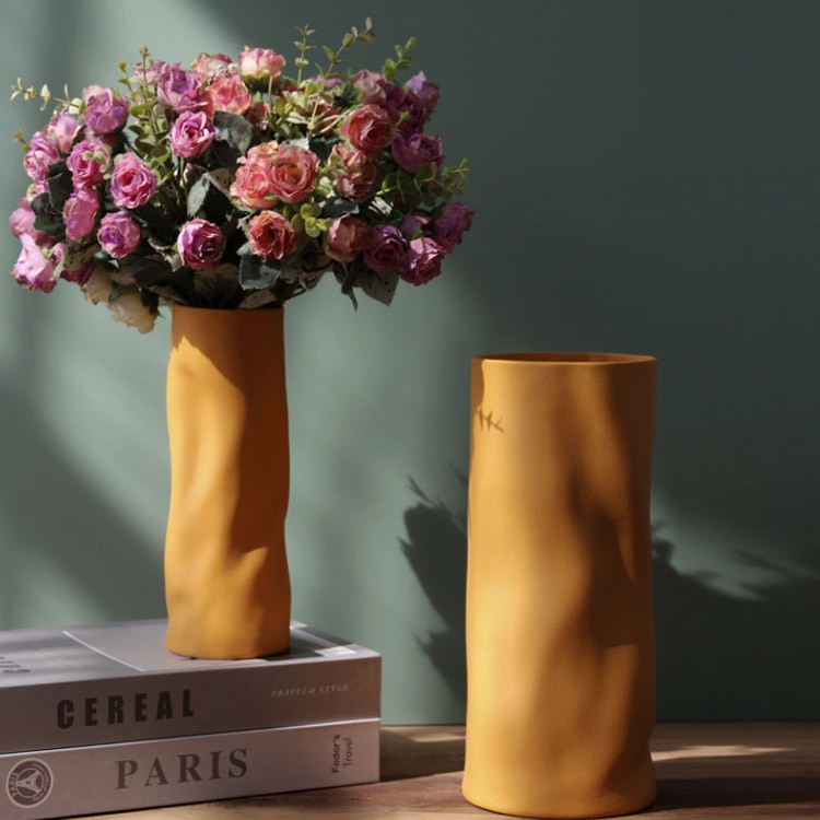 セラミック 花瓶 フラワーベース おし オレンジ ベージュ イエロー グリーン ホワイト 高さ28cm×直径11.5cm 高さ22cm×直径7.5cm
