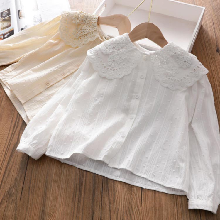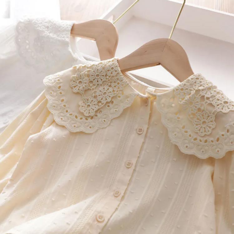 女の子 レース ブラウス 長袖 トップ キッズ ベビー マタニティ 新作 アプリコット ホワイト 100 110 120 130 140 150