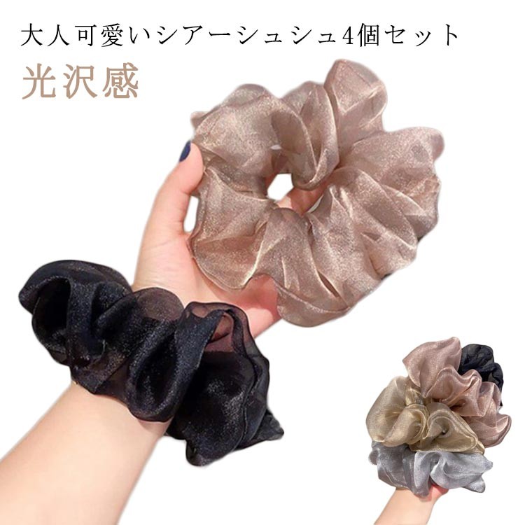 シュシュ ボリューム 光沢感 きれいめ ジュエリー アクセサリー 豊富