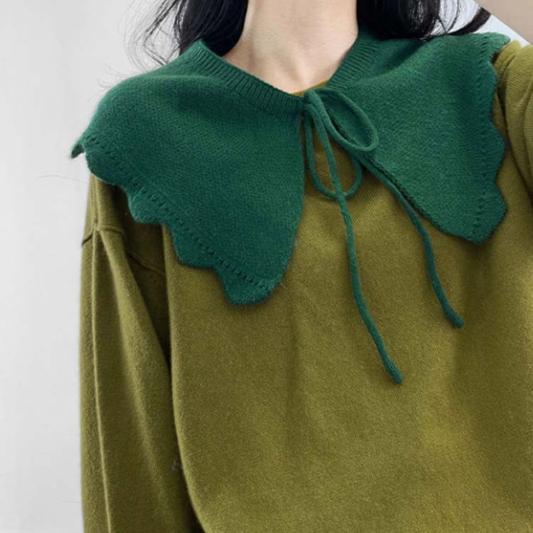 フェイクカラー ニット レディース 付 付け襟 超目玉商品 ブラウン キャメル グリーン ブラック グレー オフホワイト