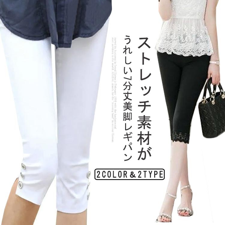 夏 脚長効果 スキニー 七分丈 レギパ Aタイプ/白 Aタイプ/黒 Bタイプ/白 Bタイプ/黒 S M L XL 2XL 3XL 4XL 5XL