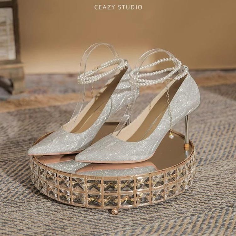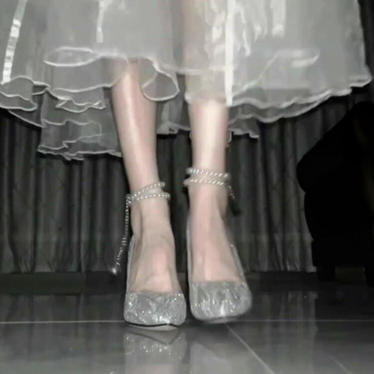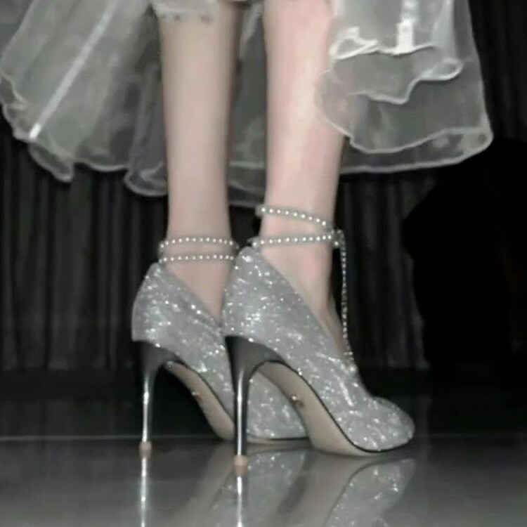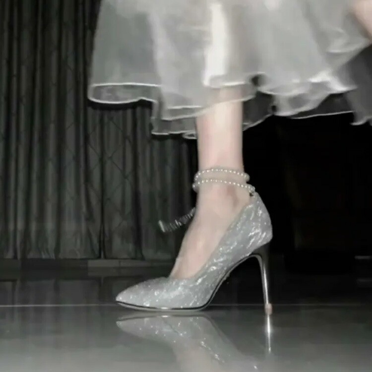ハイヒール ストラップ パンプス レデ シルバー/6cm シルバー/8cm シルバー/10cm 34(内寸220mm) 35(内寸225mm) 36(内寸230mm) 37(内寸235mm) 38(内寸240mm) 39(内寸245mm) 40(内寸250mm)