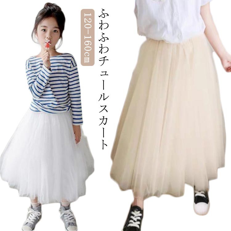 スカート キッズ 春夏 チュールスカー キッズ ボトムス スカート 豊富 アプリコット ホワイト ブラック 120 130 140 150 160