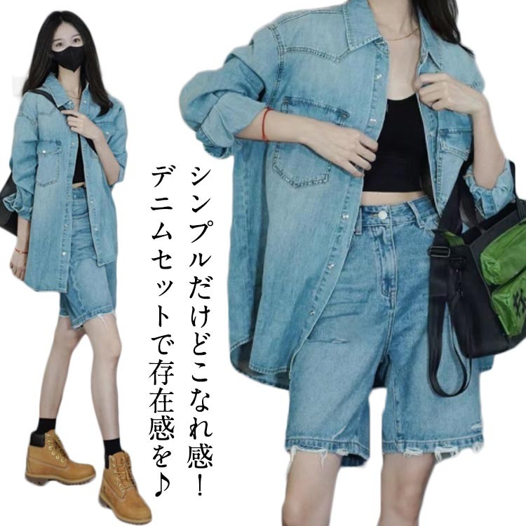 デニムセットアップデニムシャツ デニム レディースファッション 超目玉商品 M(45-52.5KG) L(52.5-57.5KG) XL(57.5-62.5KG) 2XL(62.5-67.5KG) 3XL(67.5-75KG)