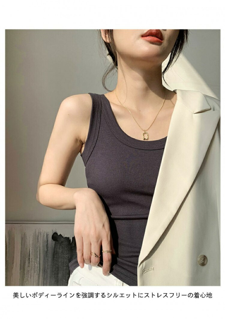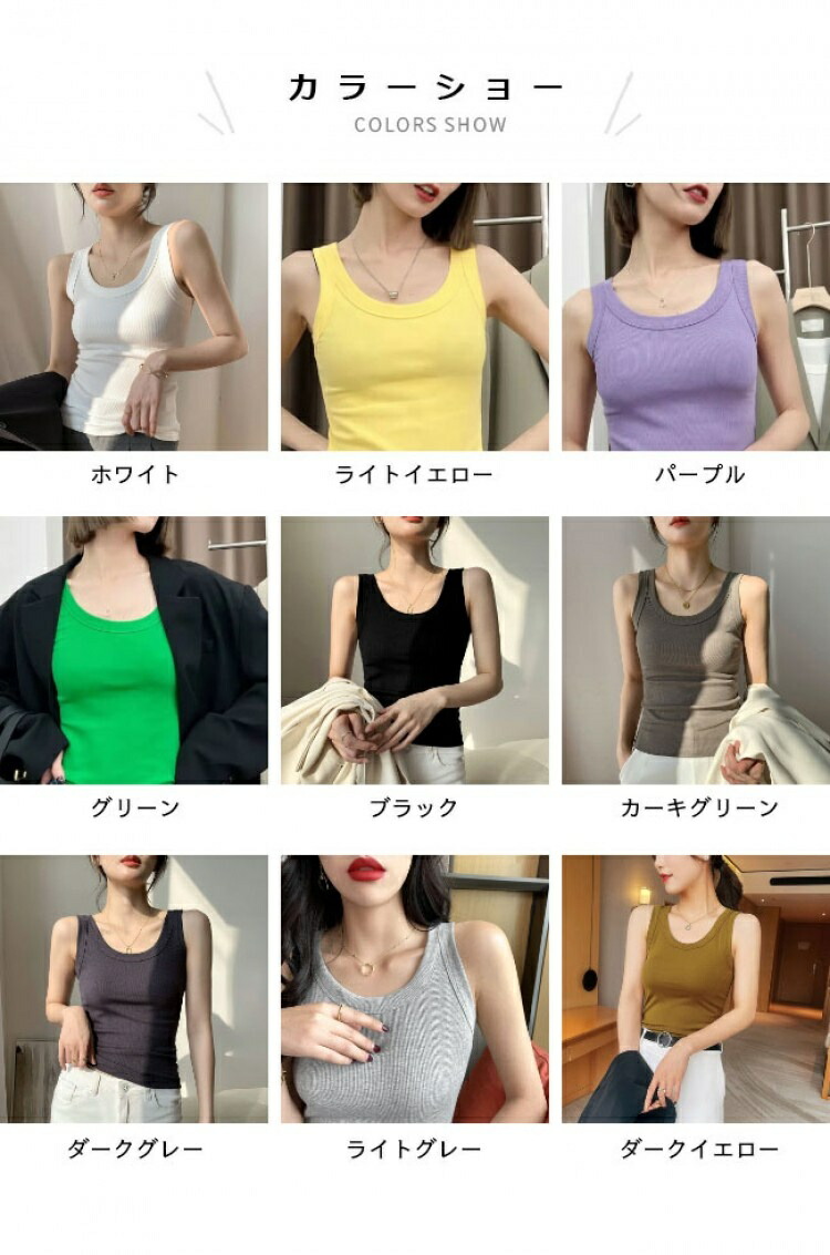 リブタンクトップ レディース Uネック レディースファッション 早い者勝ち M L XL 2XL ホワイト ライトイエロー パープル グリーン ブラック カーキグリーン ダークグレー ライトグレー ダークイエロー