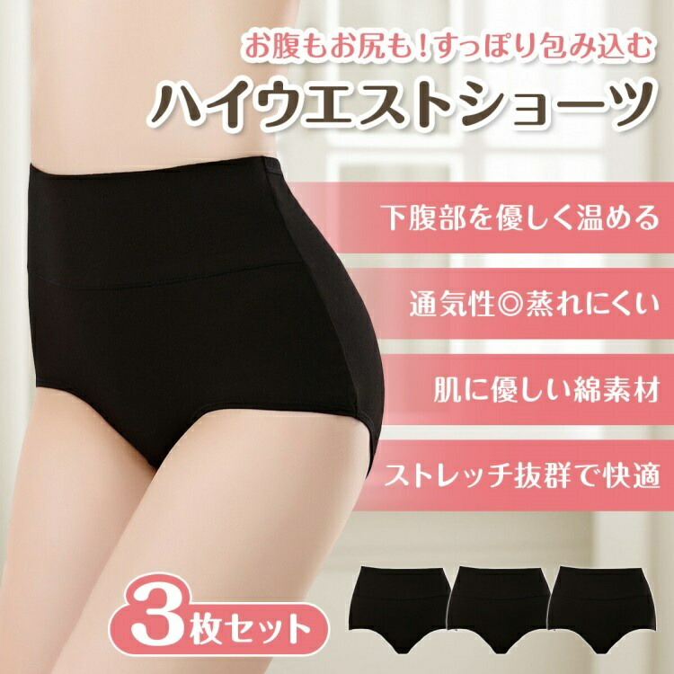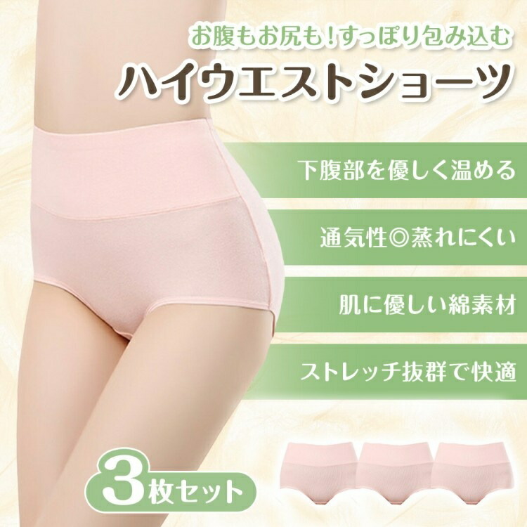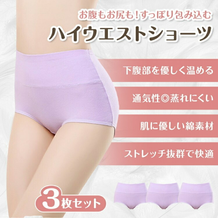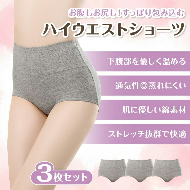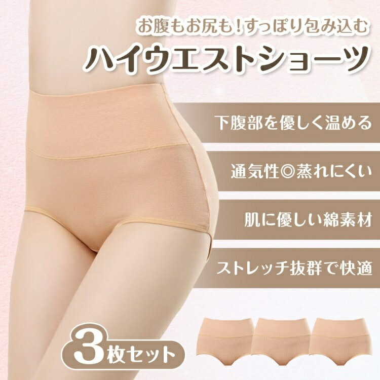 ハイウエスト ショーツ 3枚セット レ レディース インナー 下着 ショーツ スタンダード 特集 ベージュ グレー ピンク ラベンダー ブラック M L XL XXL
