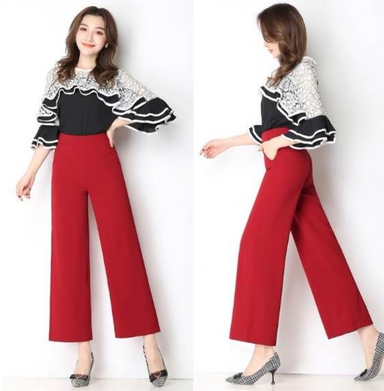 大人可愛い 無地 上品 ワイドパンツ ボトムス パンツ 超目玉商品 ブラック ワインレッド グリーン グレージュ オフホワイト ベージュ M L XL 2XL 3XL 4XL 5XL 6XL