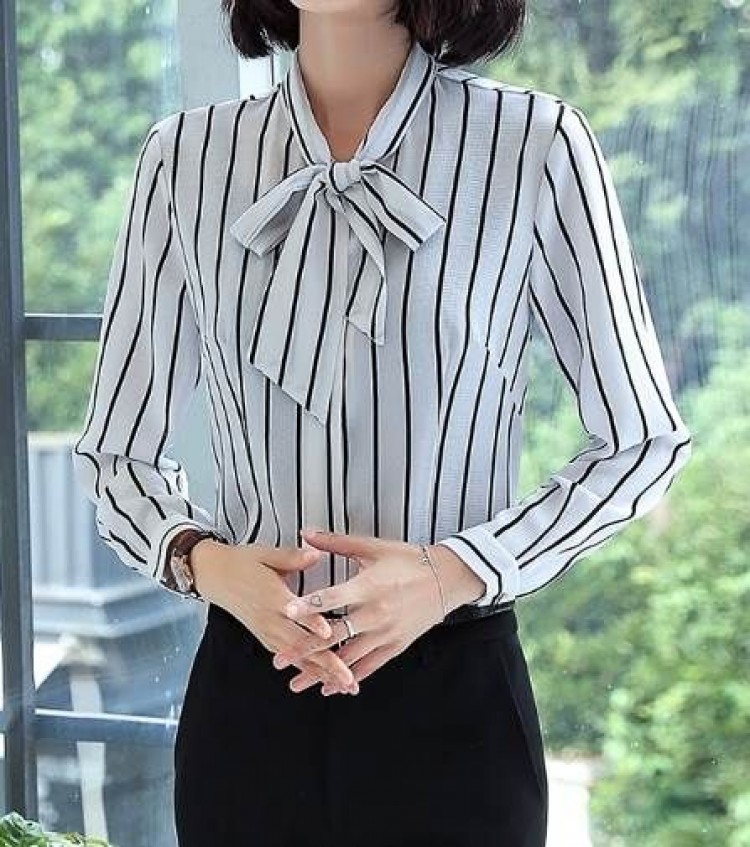 シアースリーブ ドッキングシャツ ボウタイシャツブラウス