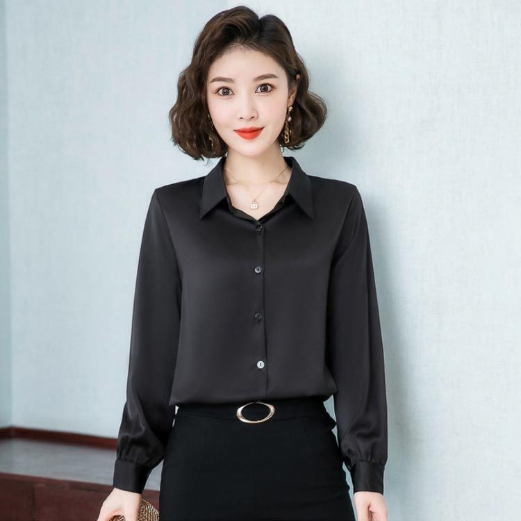 事務服 長袖 通勤 前開き サテン ビ トップス シャツ ブラウス 超目玉商品 オリーブグリーン レッド ブルー ローズ ホワイト ブラック ブラウン シャンペン パープル ピンク L XL 2XL 3XL 4XL 5XL