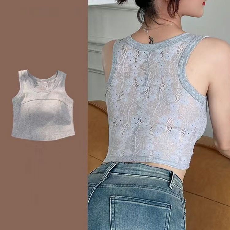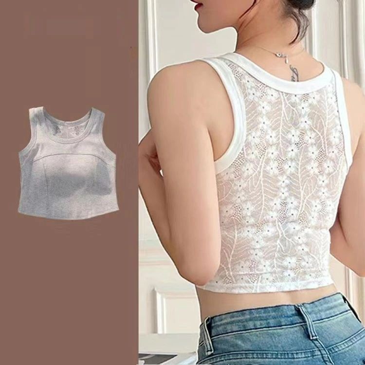 タンク 通気性 背中レース レイヤード レディースファッション 新作 ブラウン ホワイト ブルー ブラック