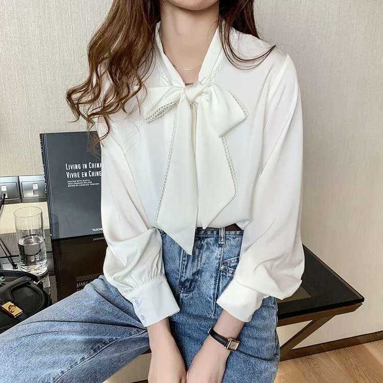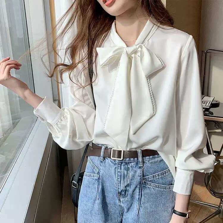 シアースリーブ ドッキングシャツ ボウタイシャツブラウス