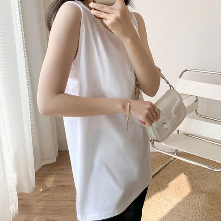 タンクトップレディースTシャツノースリーブUネックロゴプリント