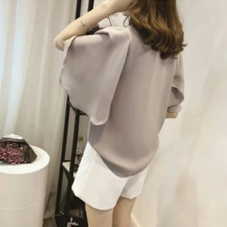 フリルブラウス ノーカラー シフォン レディースファッション 新登場! ホワイト グレー ピンク S M L XL 2XL 3XL 4XL