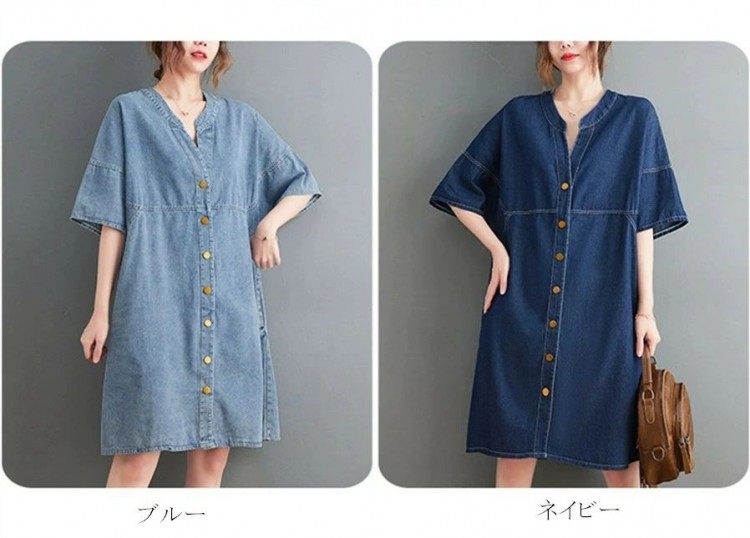 秋 切替えワンピース シャツワンピース ワンピース 新登場! ネイビー ブルー L XL 2XL