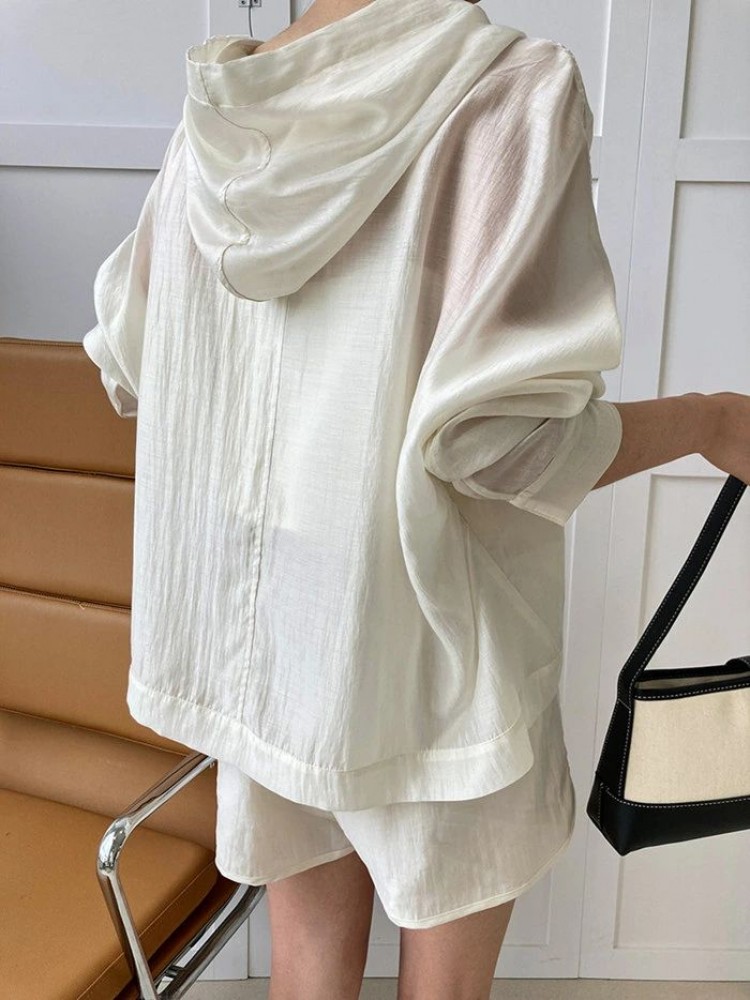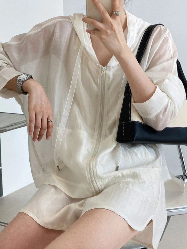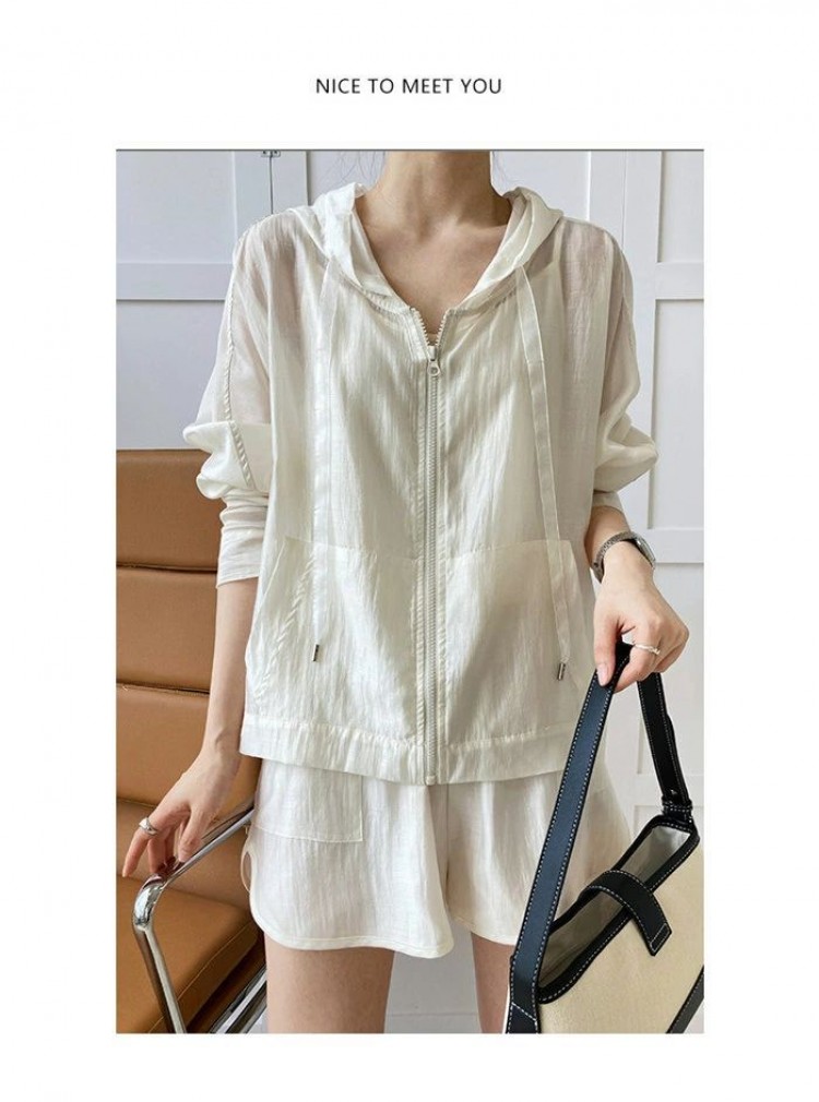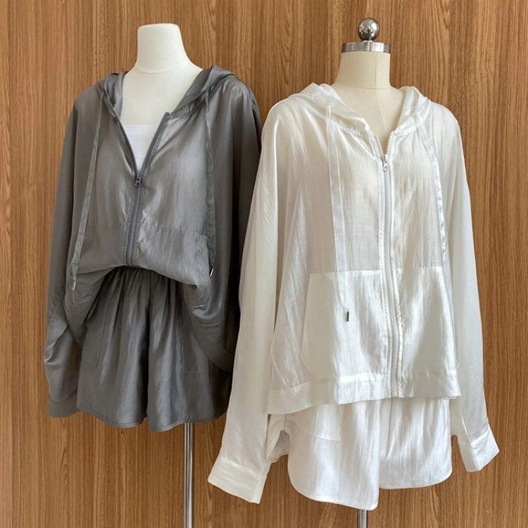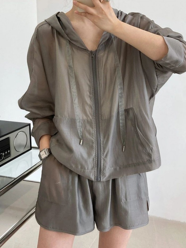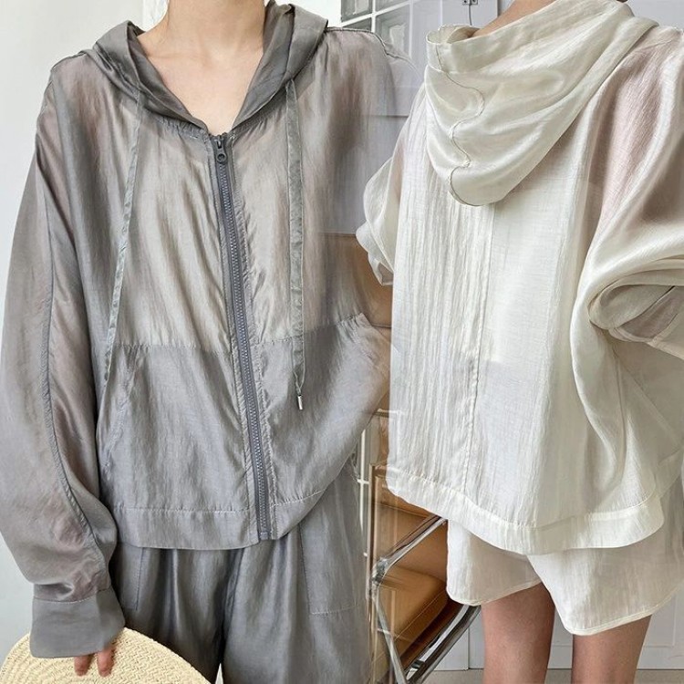 フードパーカー 紫外線対策 長袖薄手パ レディースファッション 続々入荷中 グレー アイボリー M L