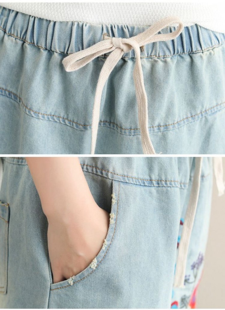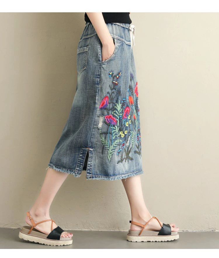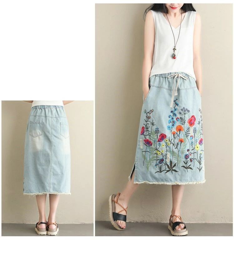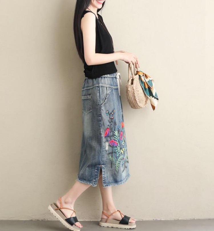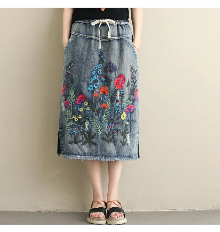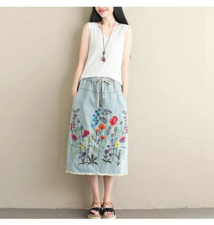 20代30代40代50代60代 刺繍 ボトムス スカート 人気 ブルー スカイブルー L 2XL