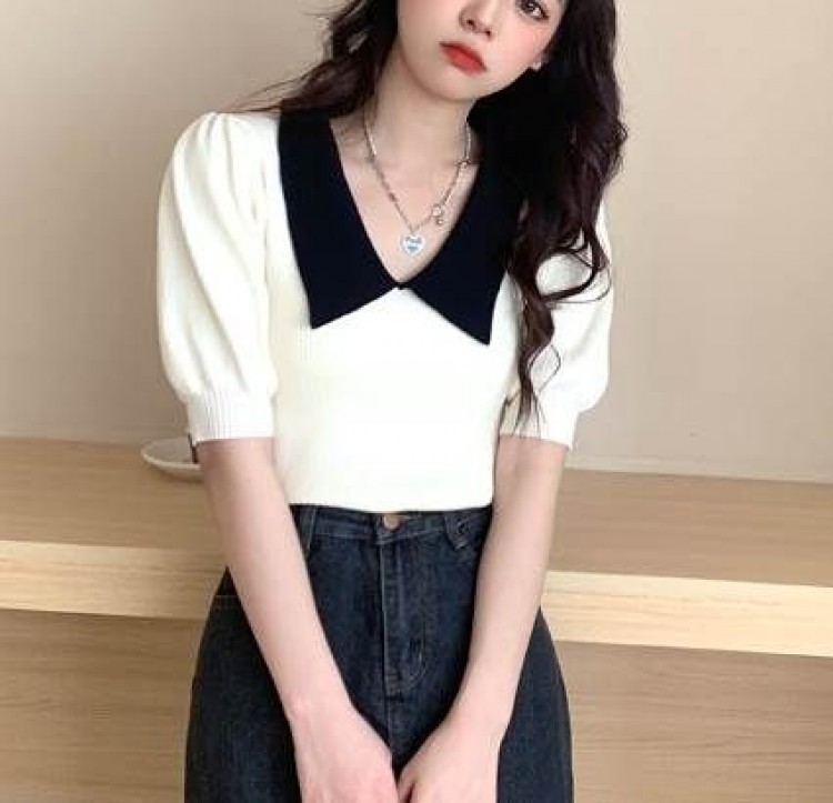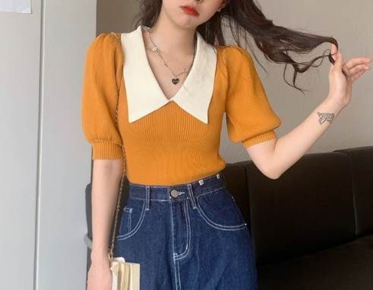 上品 レディース パフスリーブ イエロ トップス Tシャツ カットソー 特集 ブラック ホワイト レトロイエロー ヴィンテージグリーン