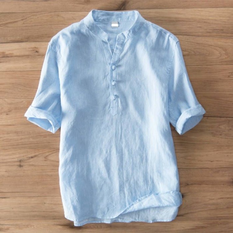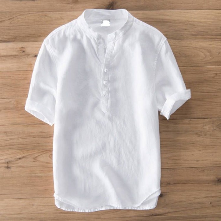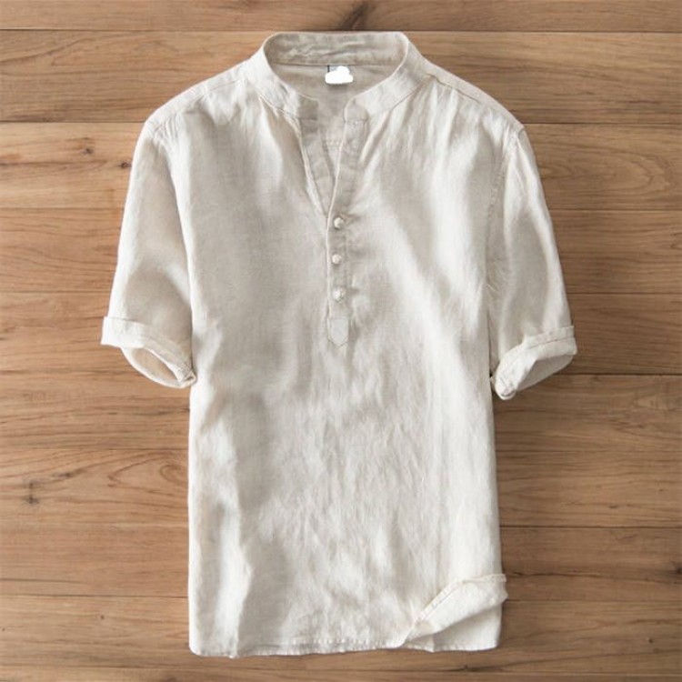 メンズ ゆったり風 綿麻 半袖Tシャツ リネンTシャツ カジュアルTシャツ 夏物 スタンドカラー T- 新品 シンプル ヘンリーネック 無地 立ち襟 Tシャツ ス