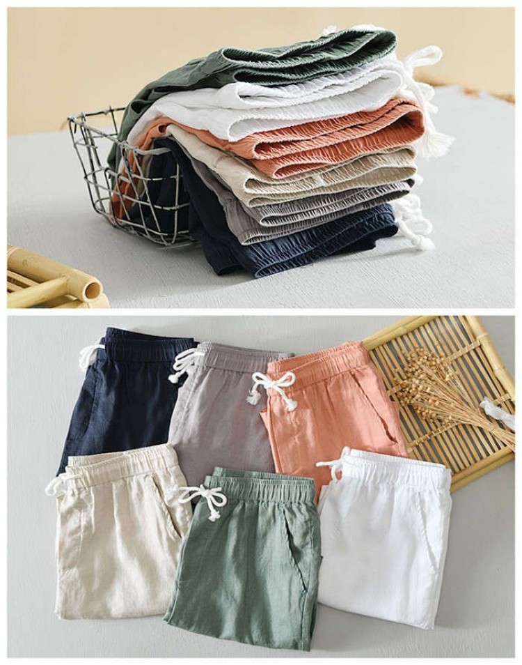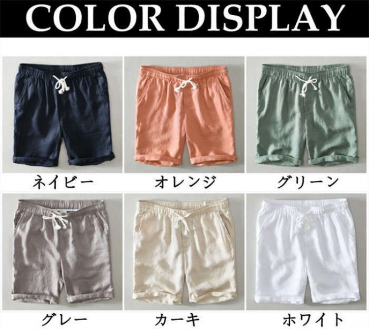 ショーツ ビーチショーツ 麻100% ズボン パンツ 早い者勝ち ネイビー オレンジ グリーン グレー カーキ ホワイト M L XL 2XL 3XL