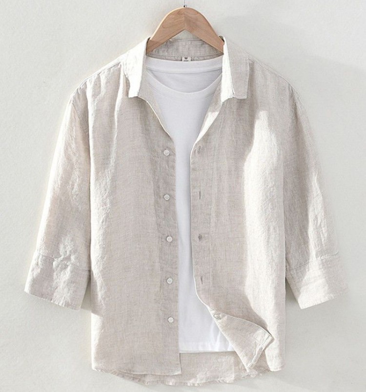 M-3XL 就活 無地 薄地 カジュアルシャツ ス シャツ 亜麻シャツ 新品 凉感 七分袖シャツ 夏物 通気 仕事 リネンシャツ ファッション シンプル メンズシャツ 通勤