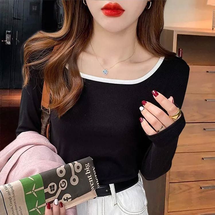 配色 スクエアネック 長袖 Tシャツ レディースファッション 特集 裏起毛1 裏起毛2 裏起毛3 裏起毛4 裏起毛5 M L XL 2XL 3XL