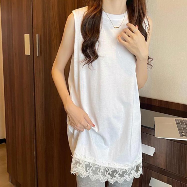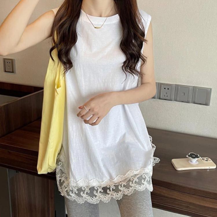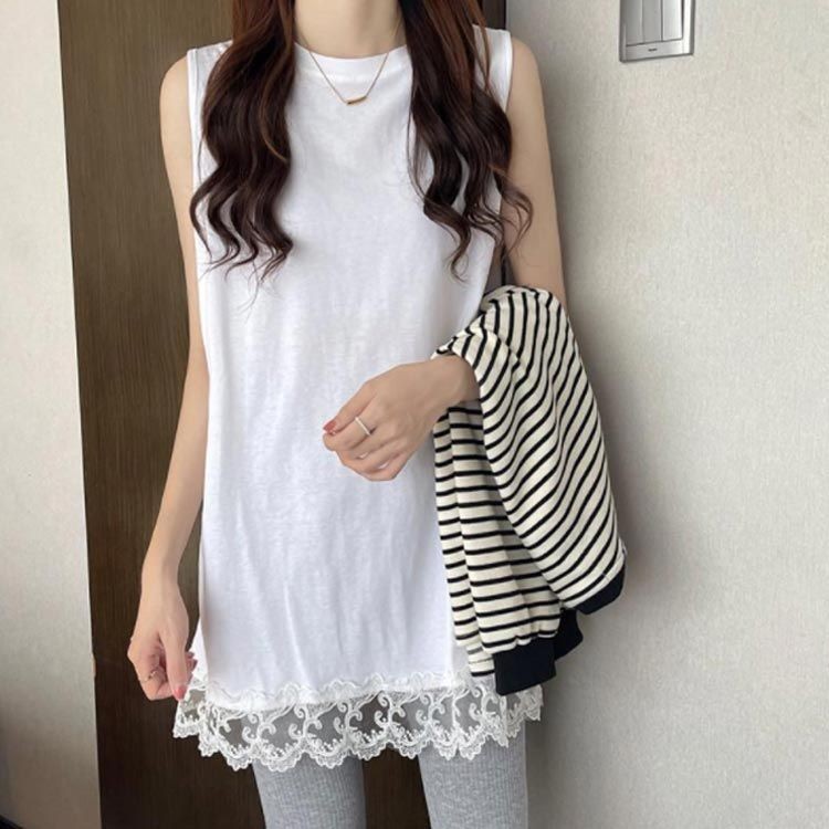 裾レース タンク レディース ス キャ レディースファッション 続々入荷中 ホワイト ブラック M L XL 2XL 3XL