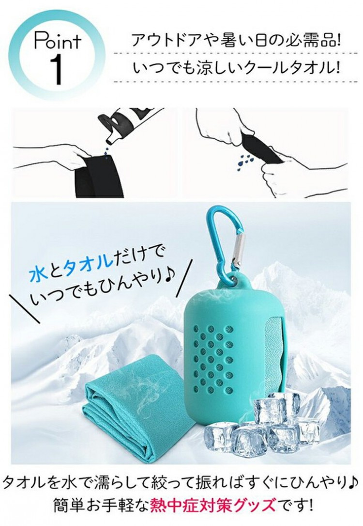 クールタオル ケース付き 2枚セット タオル 冷却タオル 特集 グリーン×2 ブルー×2 ピンク×2 パープル×2 グレー×2