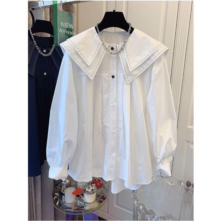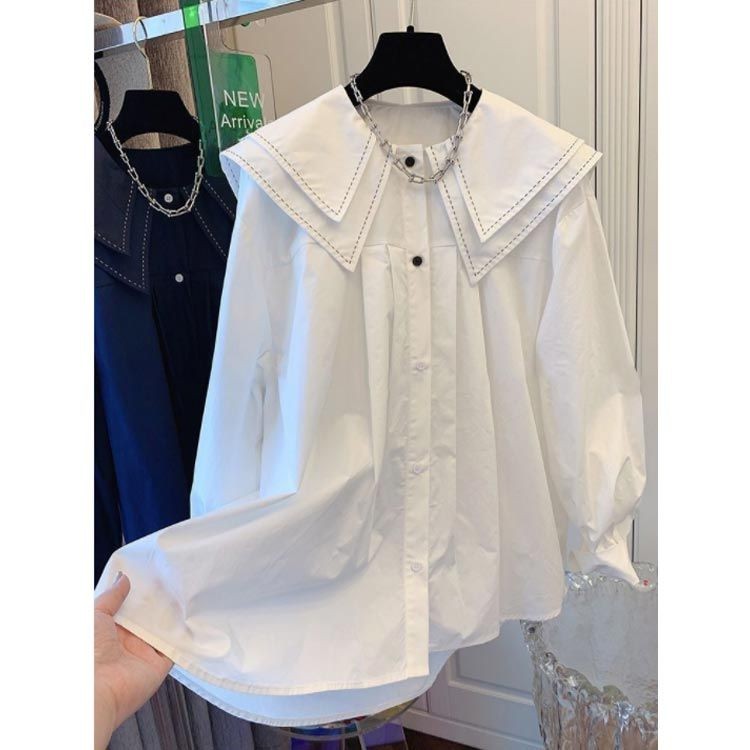 シャツ レディース 長袖シャツ ブラウ レディースファッション 超目玉商品 ホワイト ネイビー M L XL 2XL 3XL