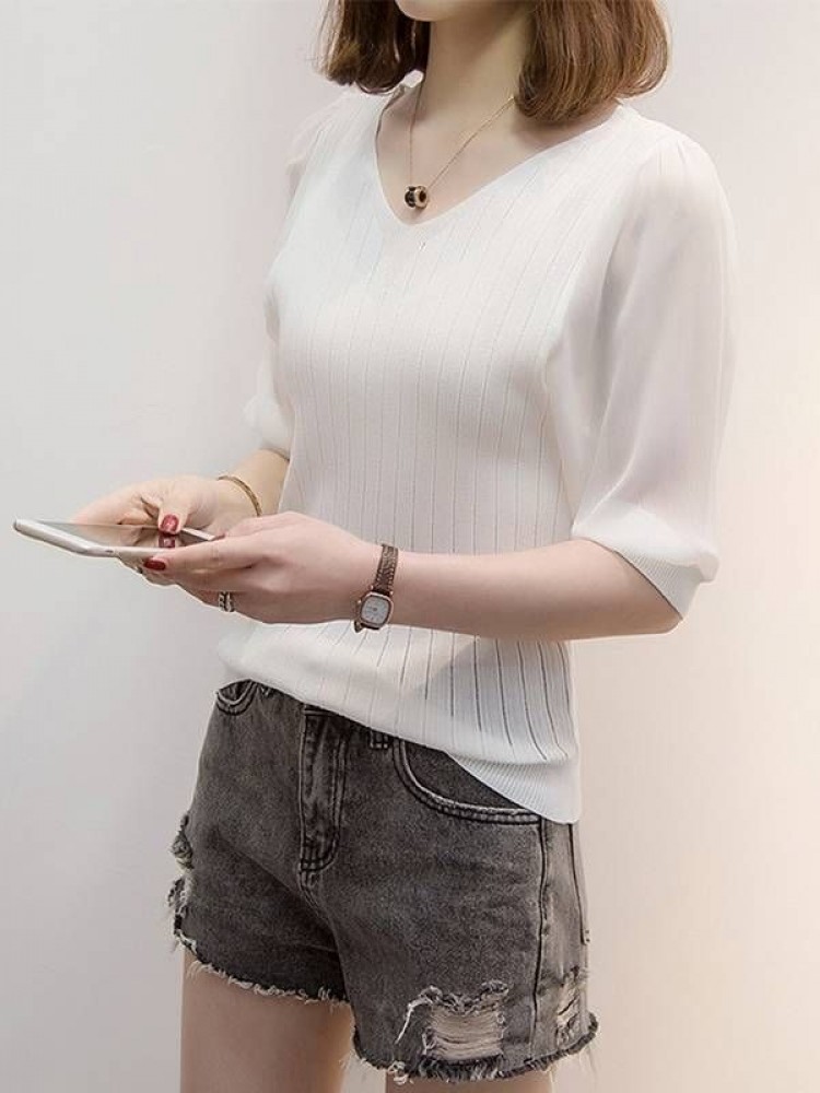 シアースリーブ ドッキングシャツ ボウタイシャツブラウス