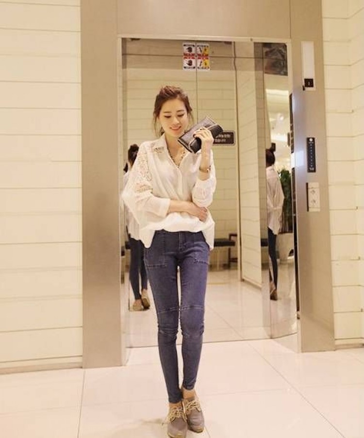 デニムパンツ ビジュー付き