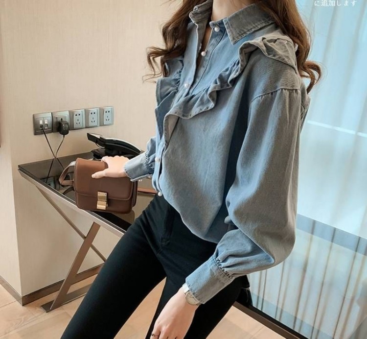 襟付き 女子会 ス お出かけ 休日 L トップス シャツ ブラウス 超目玉商品 ライトブルー ダークブルー M L XL 2XL 3XL 4XL