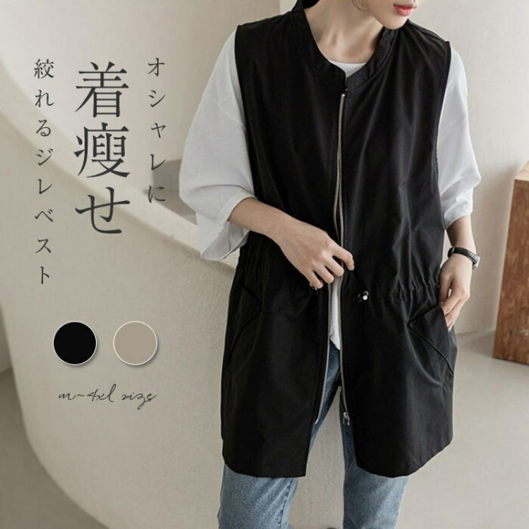 ベスト レディース 春夏 前開き ロン レディースファッション 豊富 ベージュ ブラック M L XL 2XL 3XL