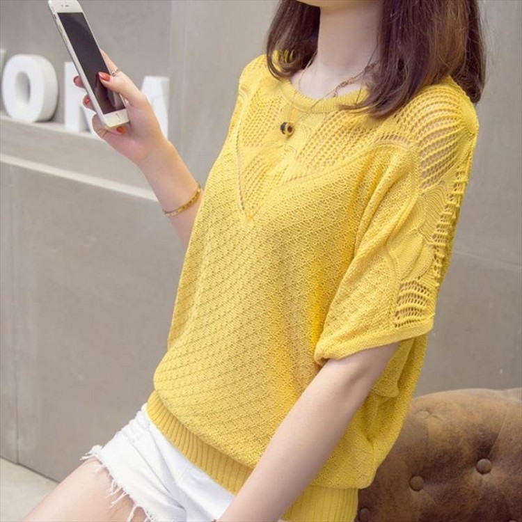 ピンク サマーニット 抜け感 5色展開 レディースファッション 新作 ピンク イエロー ライトコーヒー ホワイト ブラック