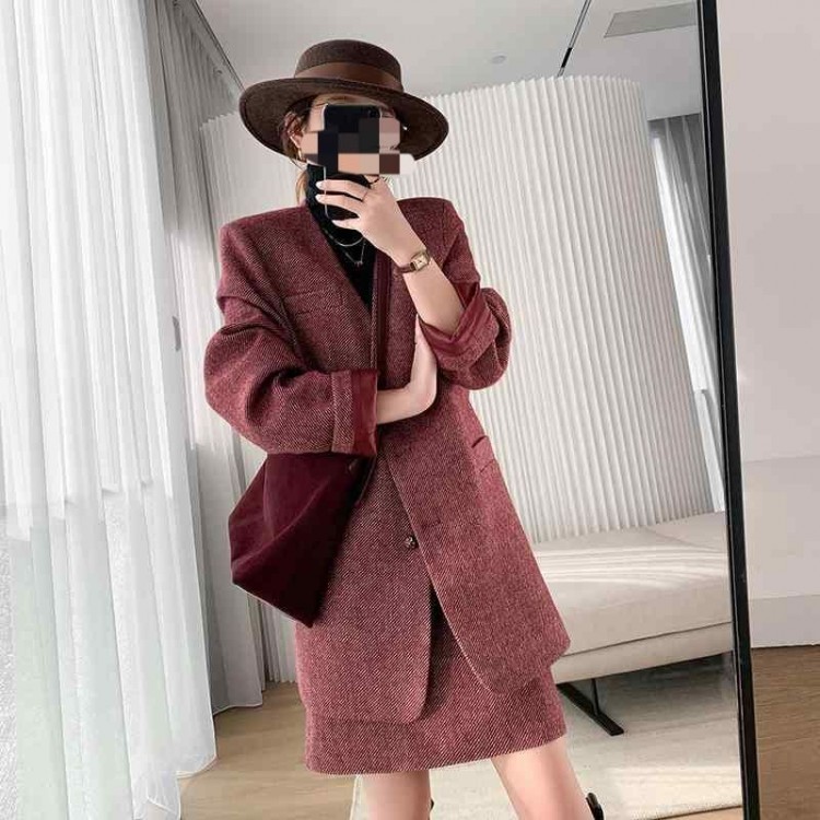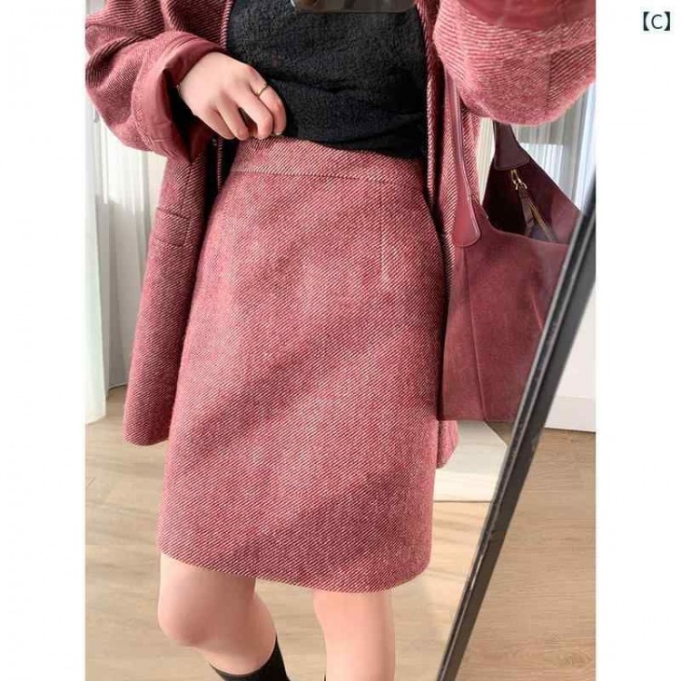 レディース 上品 韓 カラー ウール レディースファッション 早い者勝ち A:ハニーレッド/上下セット B:ハニーレッド/ジャケット C:ハニーレッド/スカート S M L XL