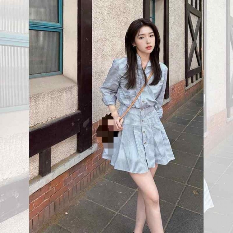 フレンチ キレイ 上品 ブルー ドレス ワンピース 新登場! S M L