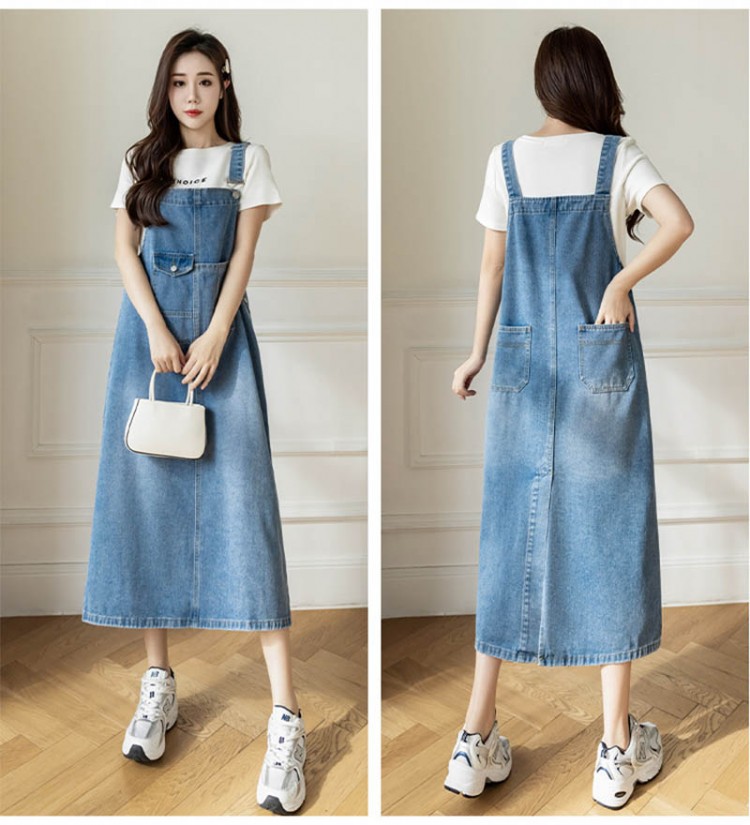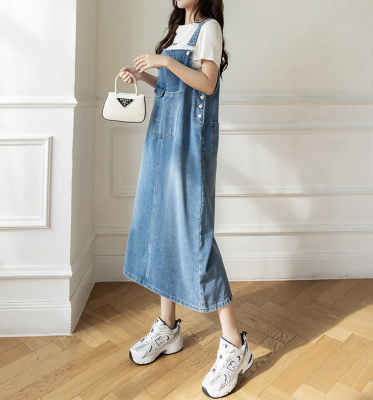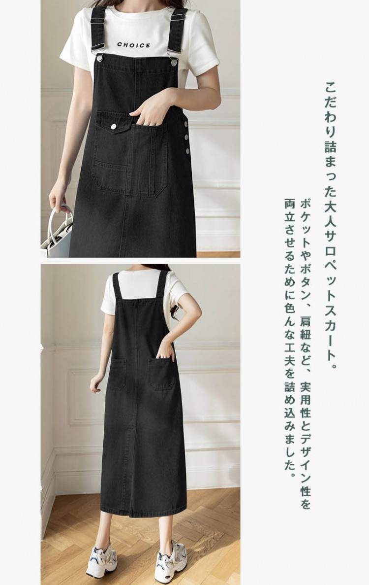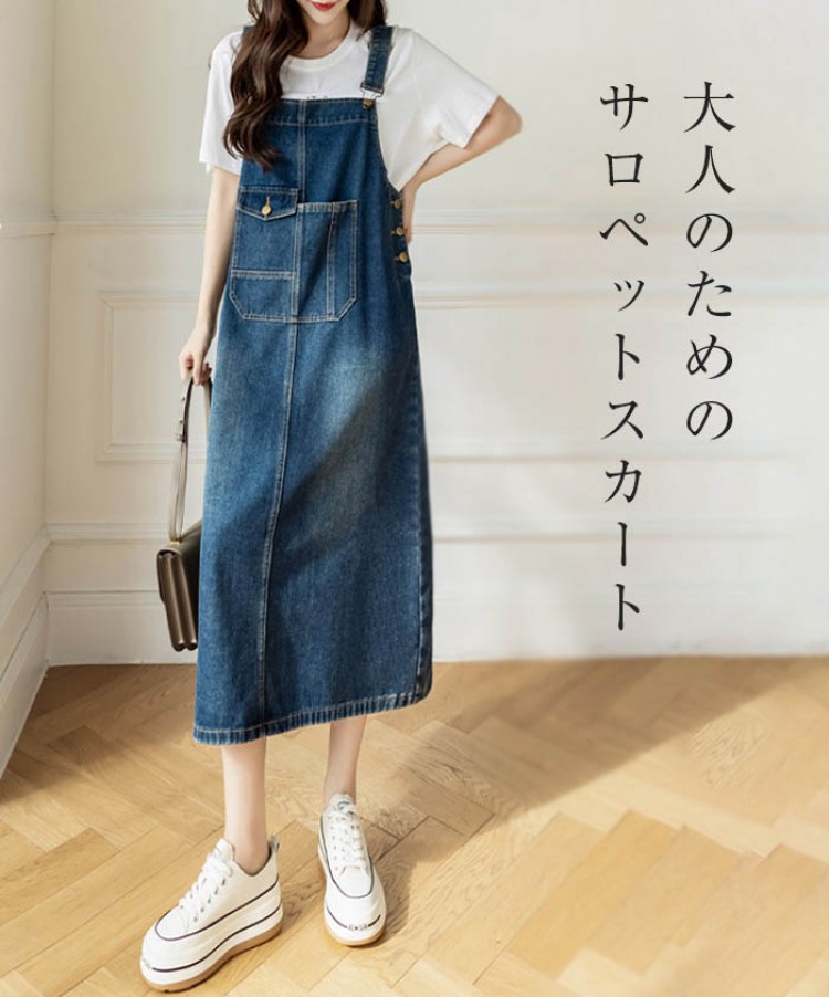 ジャンパースカート デニム サロペット ライトブルー ブルー ダークグレー S M L XL 2XL 3XL