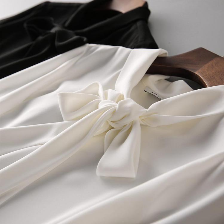 シアースリーブ ドッキングシャツ ボウタイシャツブラウス