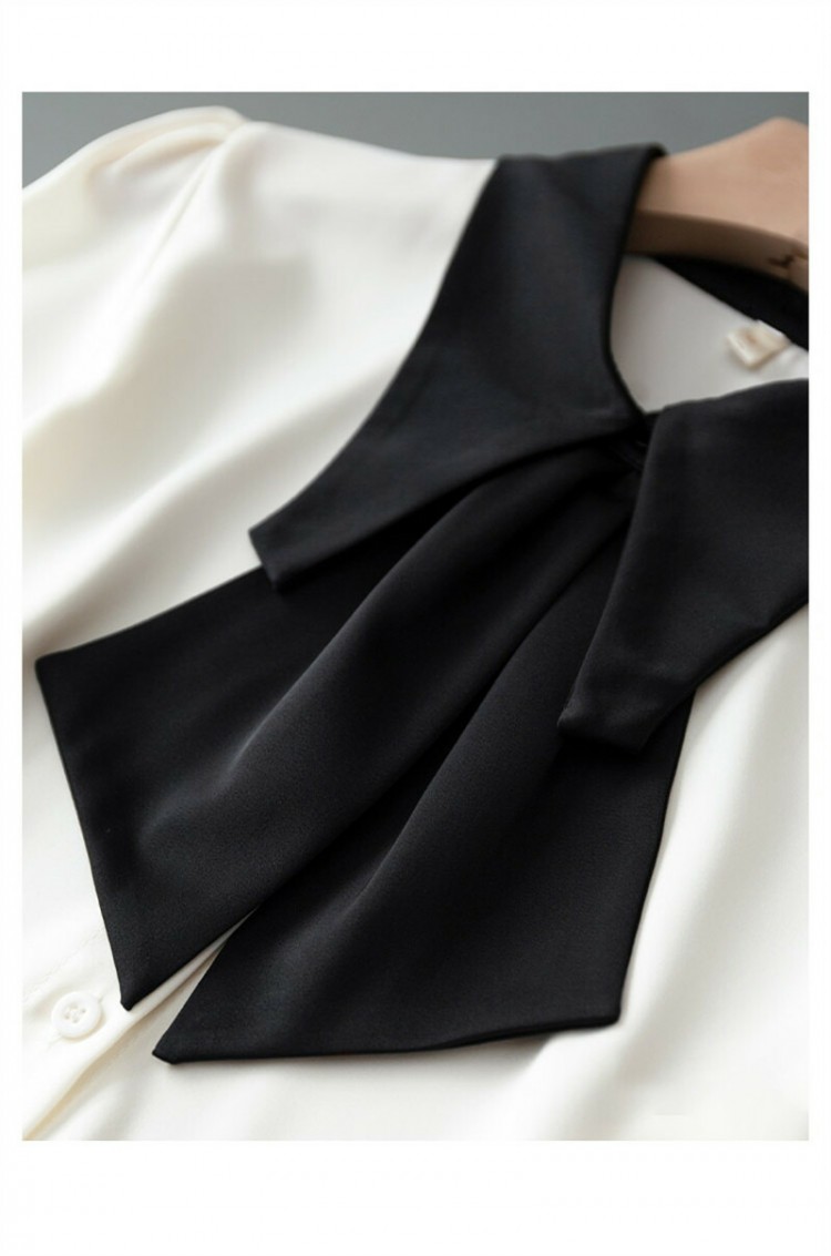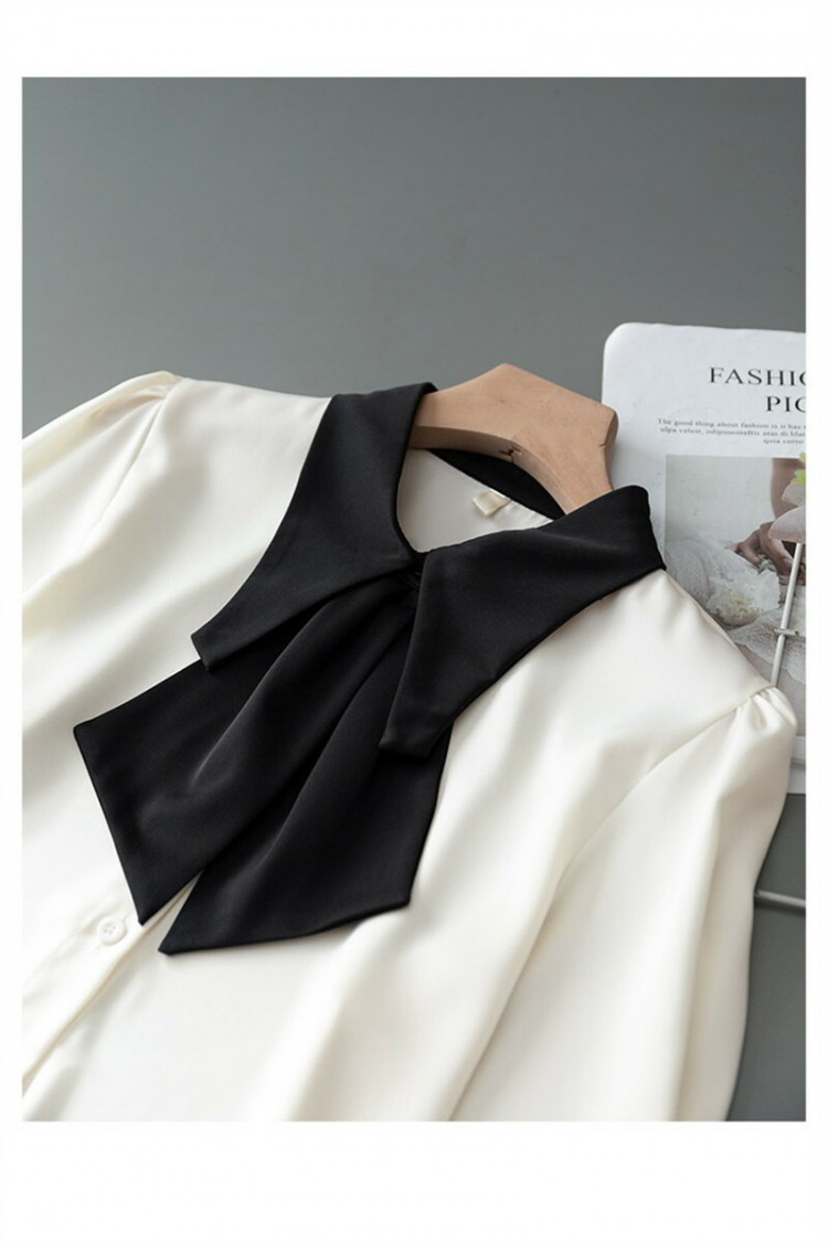 シアースリーブ ドッキングシャツ ボウタイシャツブラウス