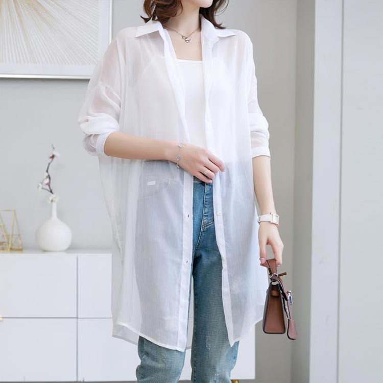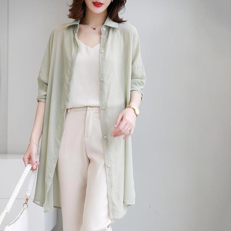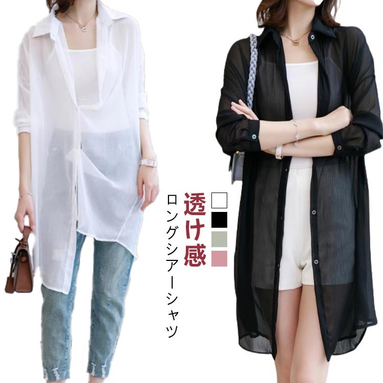 シアーシャツ 羽織り ロング グリーン トップス シャツ ブラウス 続々登場 ホワイト ブラック グリーン ピンク XXS XS S M L XL 2XL 3XL