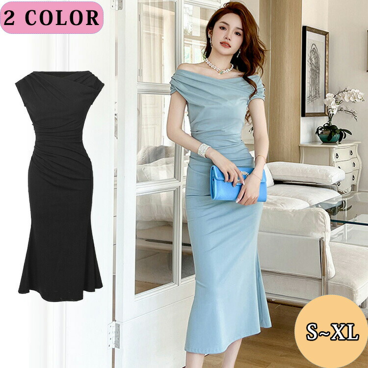 タイトワンピ オフショルダー マーメイ レディースファッション 豊富な品揃え ブルー ブラック Sサイズ Mサイズ Lサイズ XLサイズ