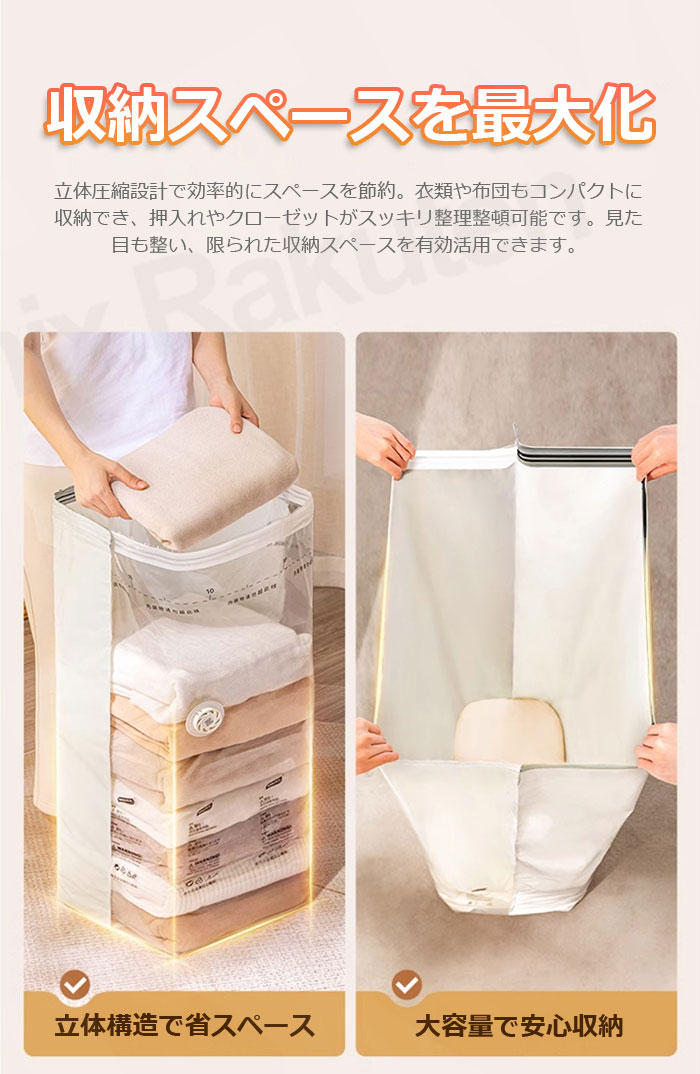 圧縮袋 衣類 ふとん 収納袋 収納 旅 日用品雑貨 文房具 手芸 特集 Mサイズ(30*50*70cm) Lサイズ(80*100*38cm)