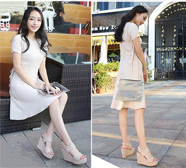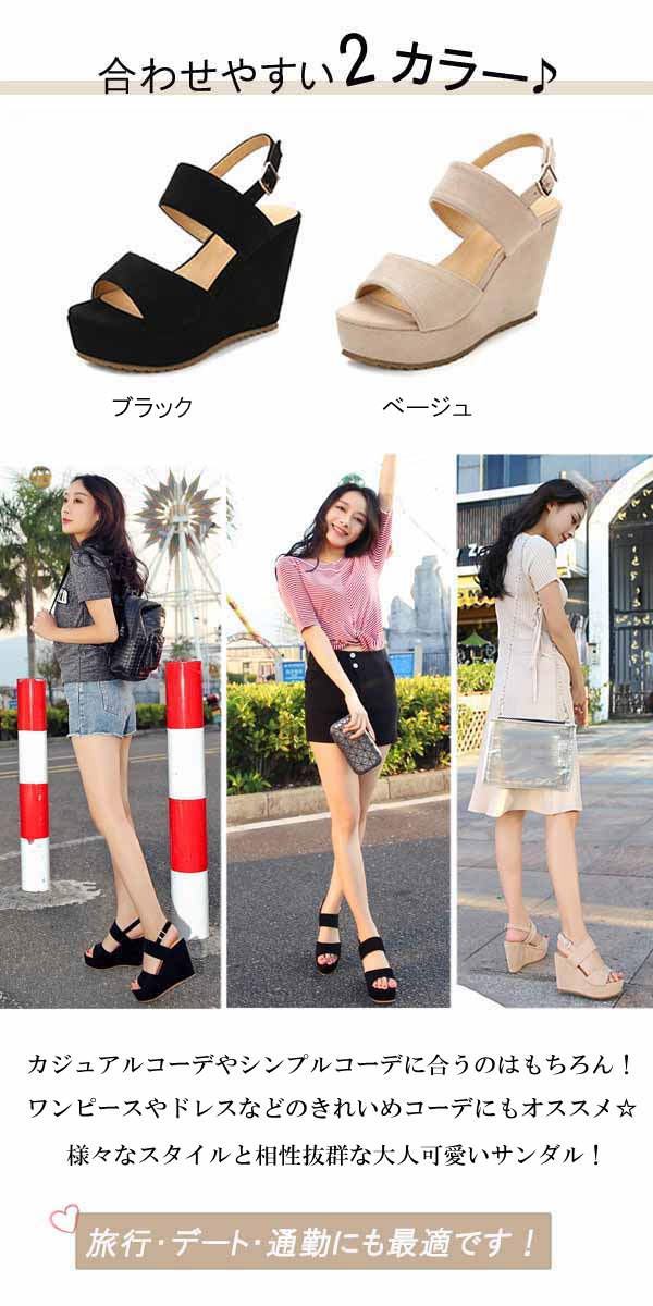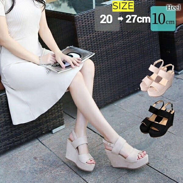 レディース ウェッジソールサンダル 厚 靴 新作 ブラック ベージュ 20.5 21.0 21.5 22.0 22.5 23.0 23.5 24.0 24.5 25.0 25.5 26.0 26.5 27.0