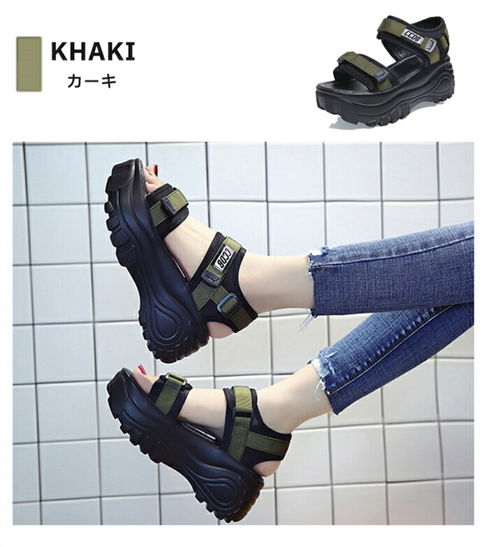 スポーツサンダル 厚底7cm レディー レディース靴 サンダル スポーツサンダル 人気 ブラック カーキ 24.5 25.0 21.5 22.0 22.5 23.0 23.5 24.0
