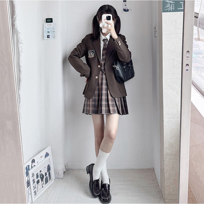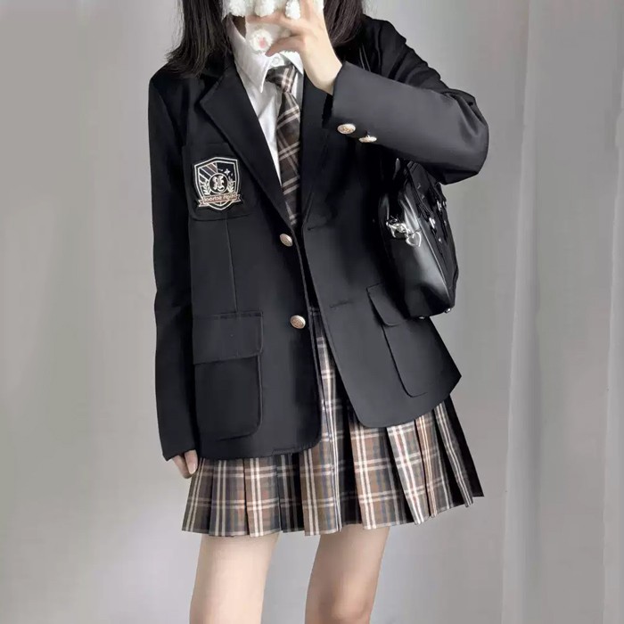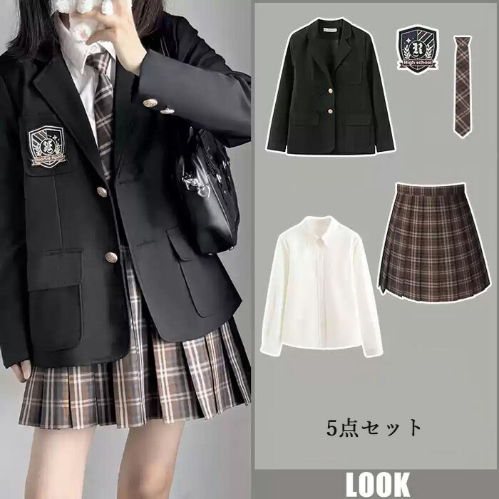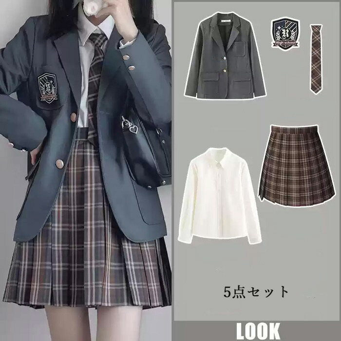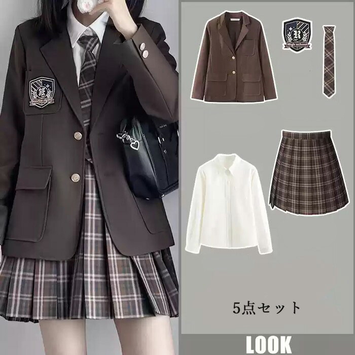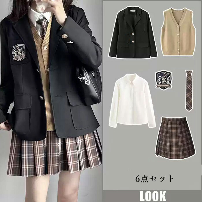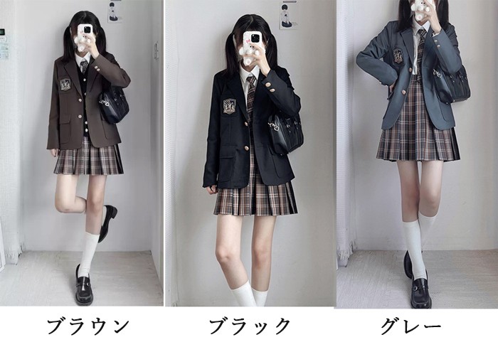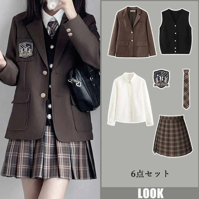 制服 ブレザー スカート セット ネク トップス ニット セーター ニットキャミソール 人気 ブラウン グレー ブラック XS S M L XL
