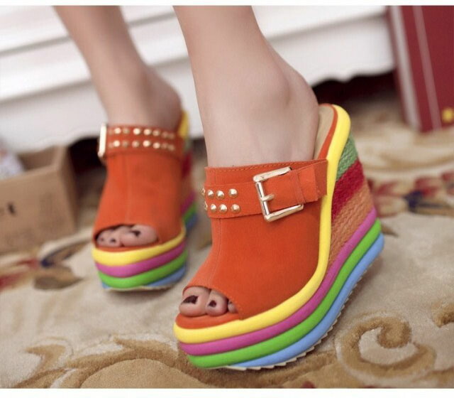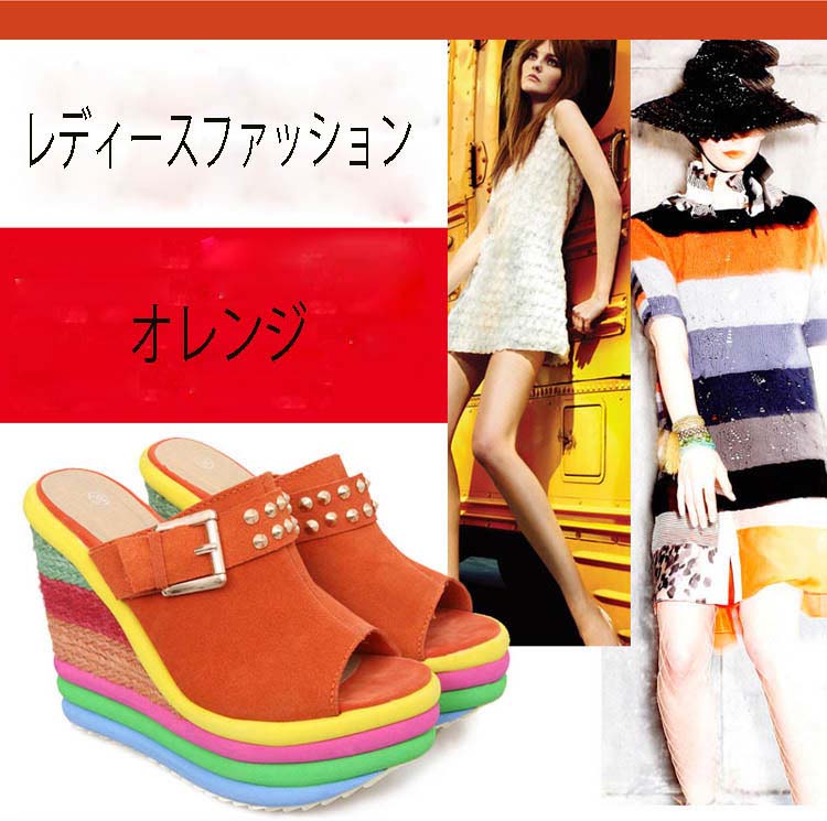 サボサンダル ミュール 厚底 ウェッジ 靴 続々登場 ブルー オレンジ 24.5 21.5 22 22.5 23 23.5 24