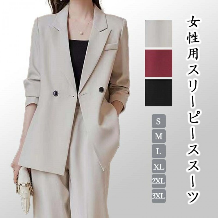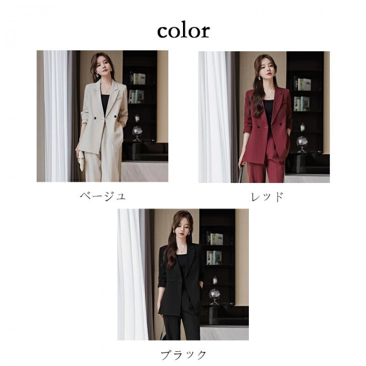 通勤服 パンツスーツ 2点セット オフ スーツ セットアップ パンツスーツ 特集 ベージュ レッド ブラック S M L XL 2XL 3XL